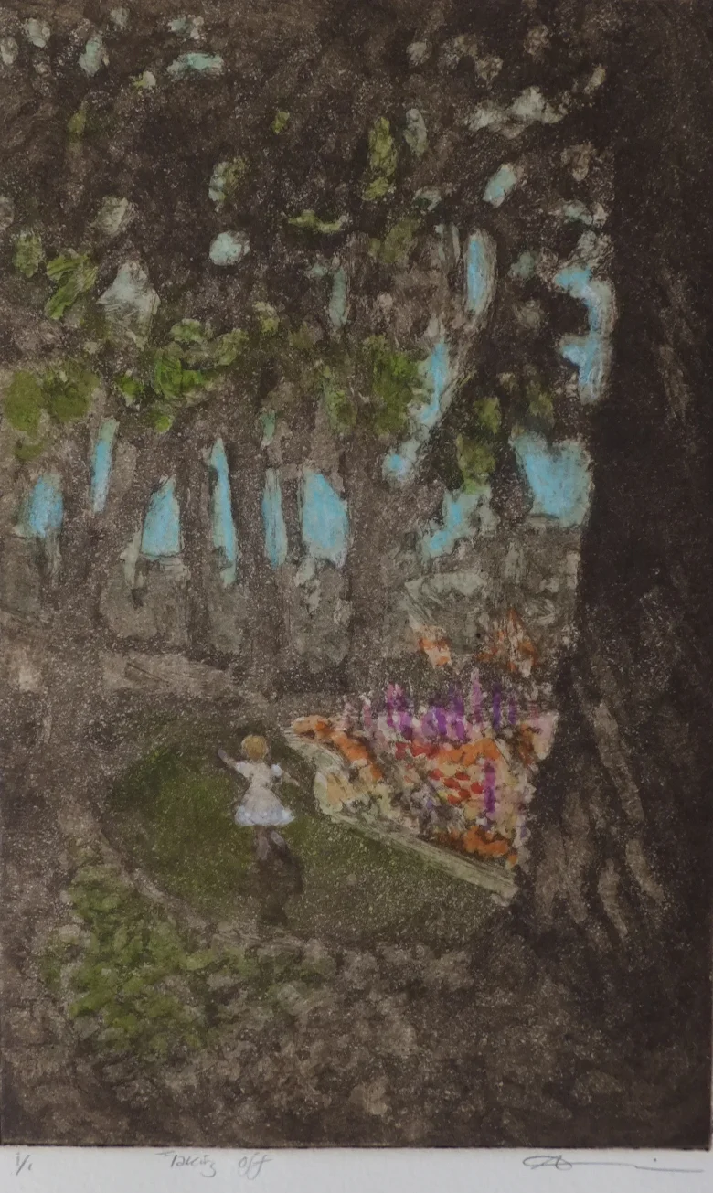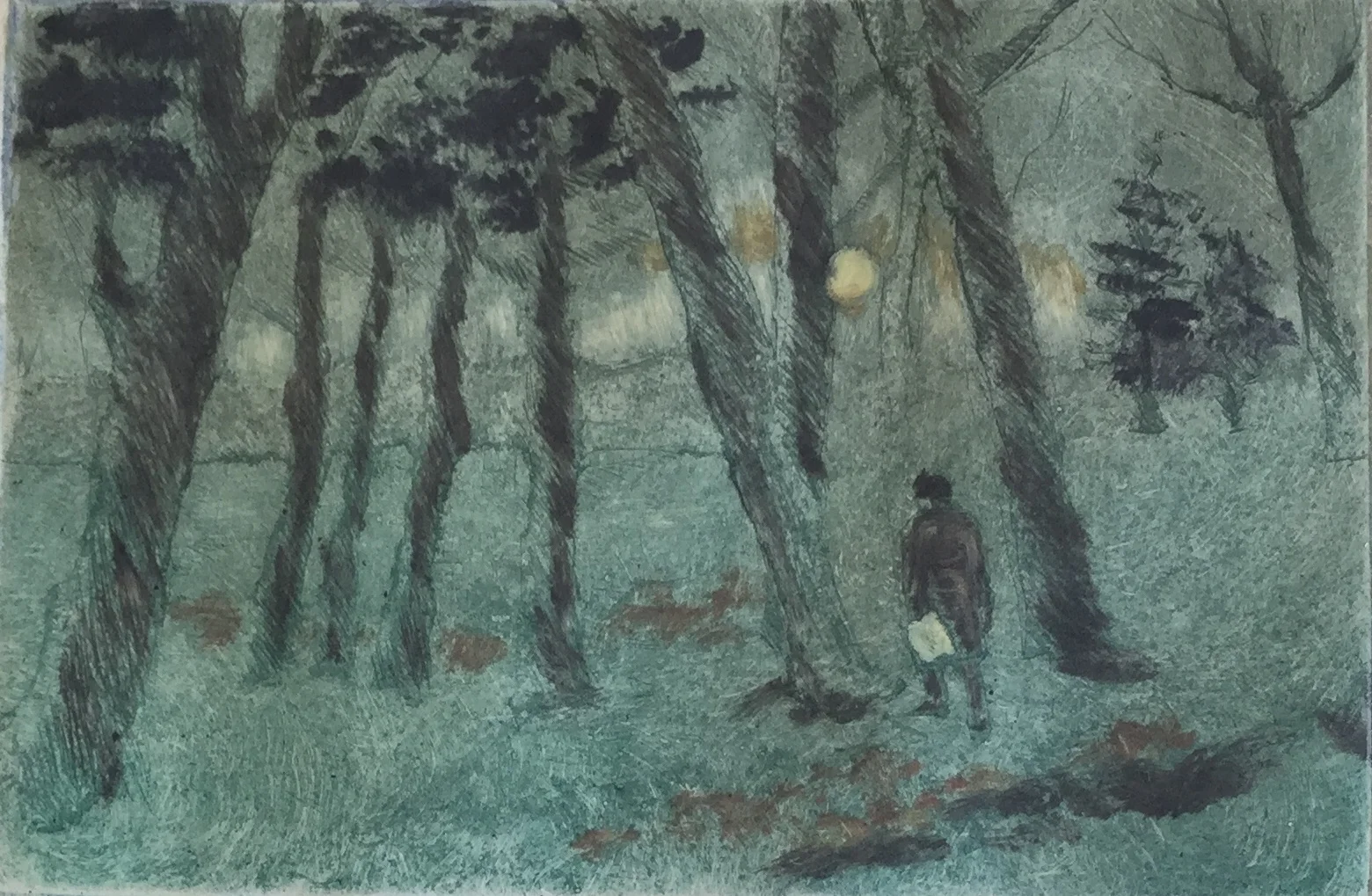 These images are hand colored etchings in which I used client's photographs as references, darkening the figures into silhouette. If you have a favorite image of your family together consider a silhouette etching as a creative option to a traditional portrait.